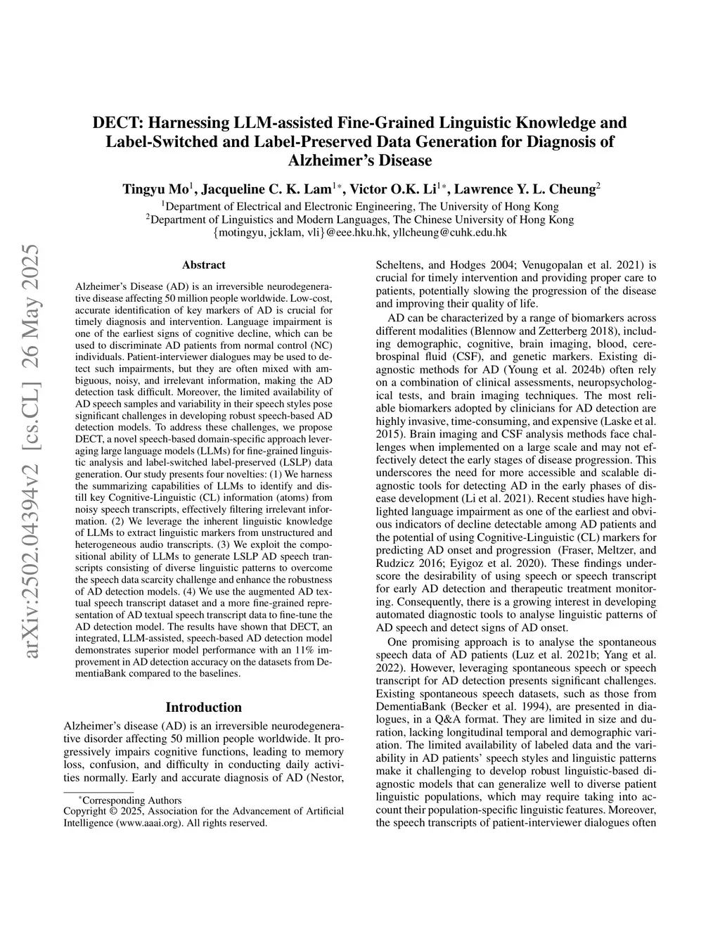 DECT: Harnessing LLM-assisted Fine-Grained Linguistic Knowledge and Label-Switched and Label-Preserved Data Generation for Diagnosis of Alzheimer's Disease