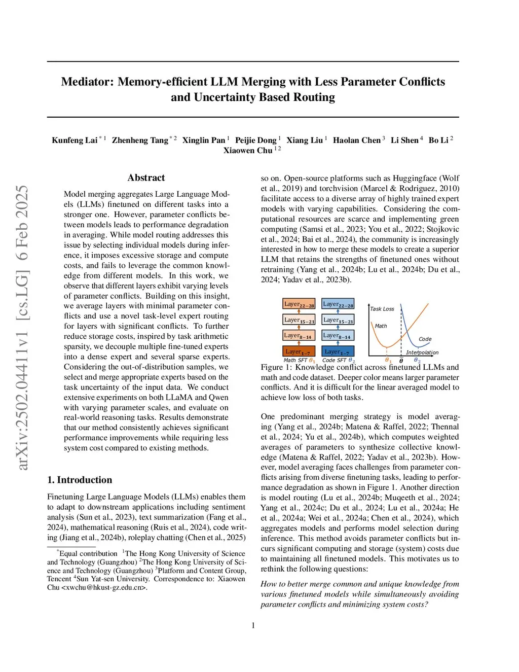 Mediator: Memory-efficient LLM Merging with Less Parameter Conflicts and Uncertainty Based Routing