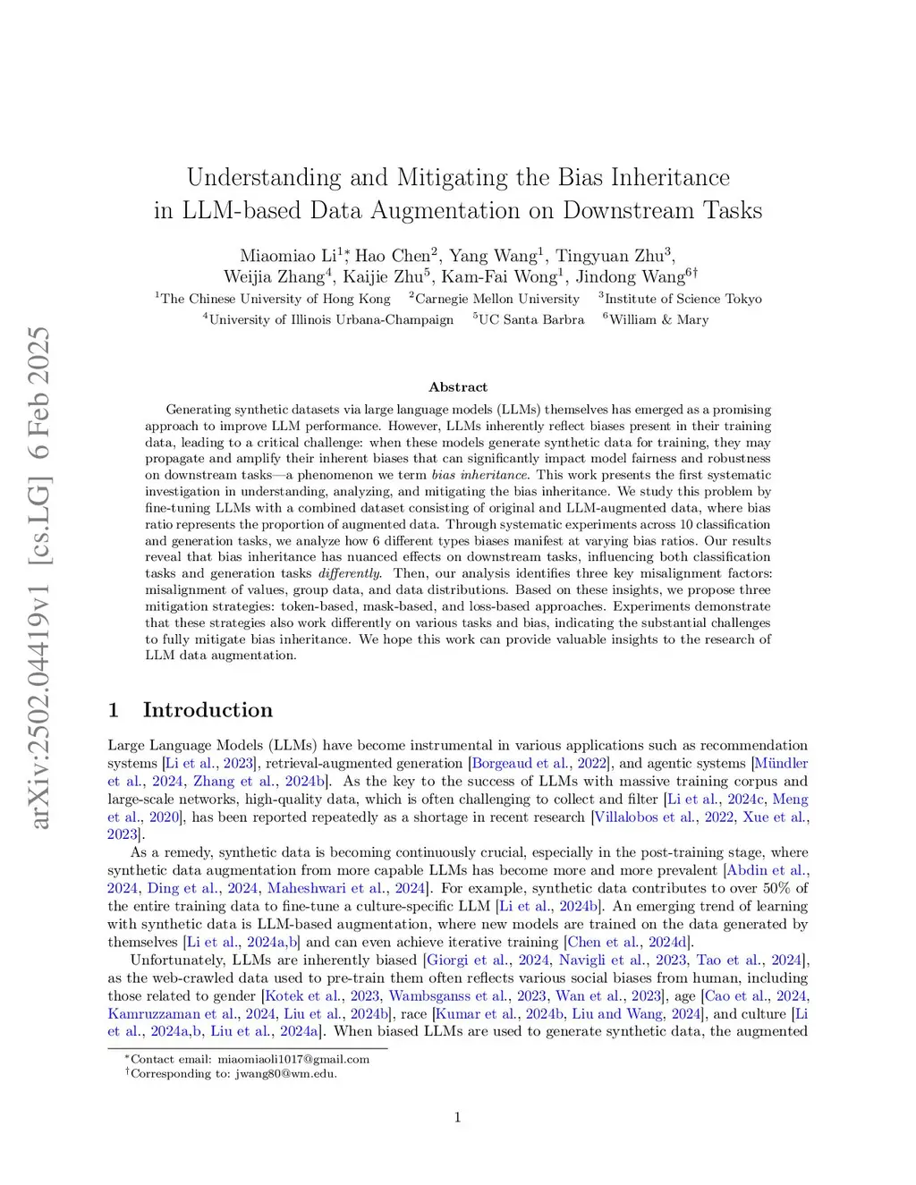 Understanding and Mitigating the Bias Inheritance in LLM-based Data Augmentation on Downstream Tasks