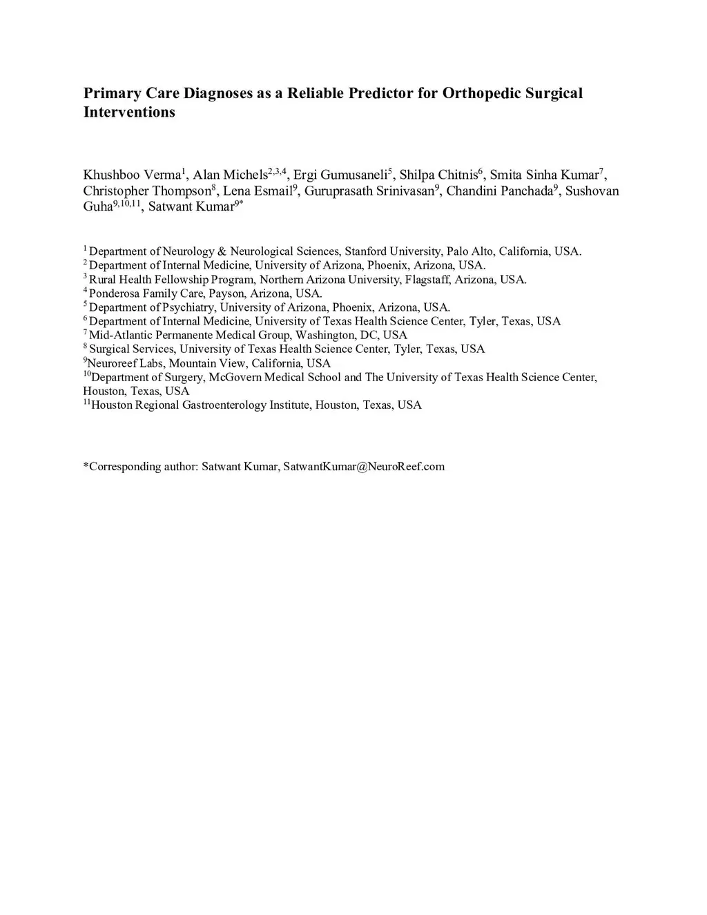 Primary Care Diagnoses as a Reliable Predictor for Orthopedic Surgical Interventions