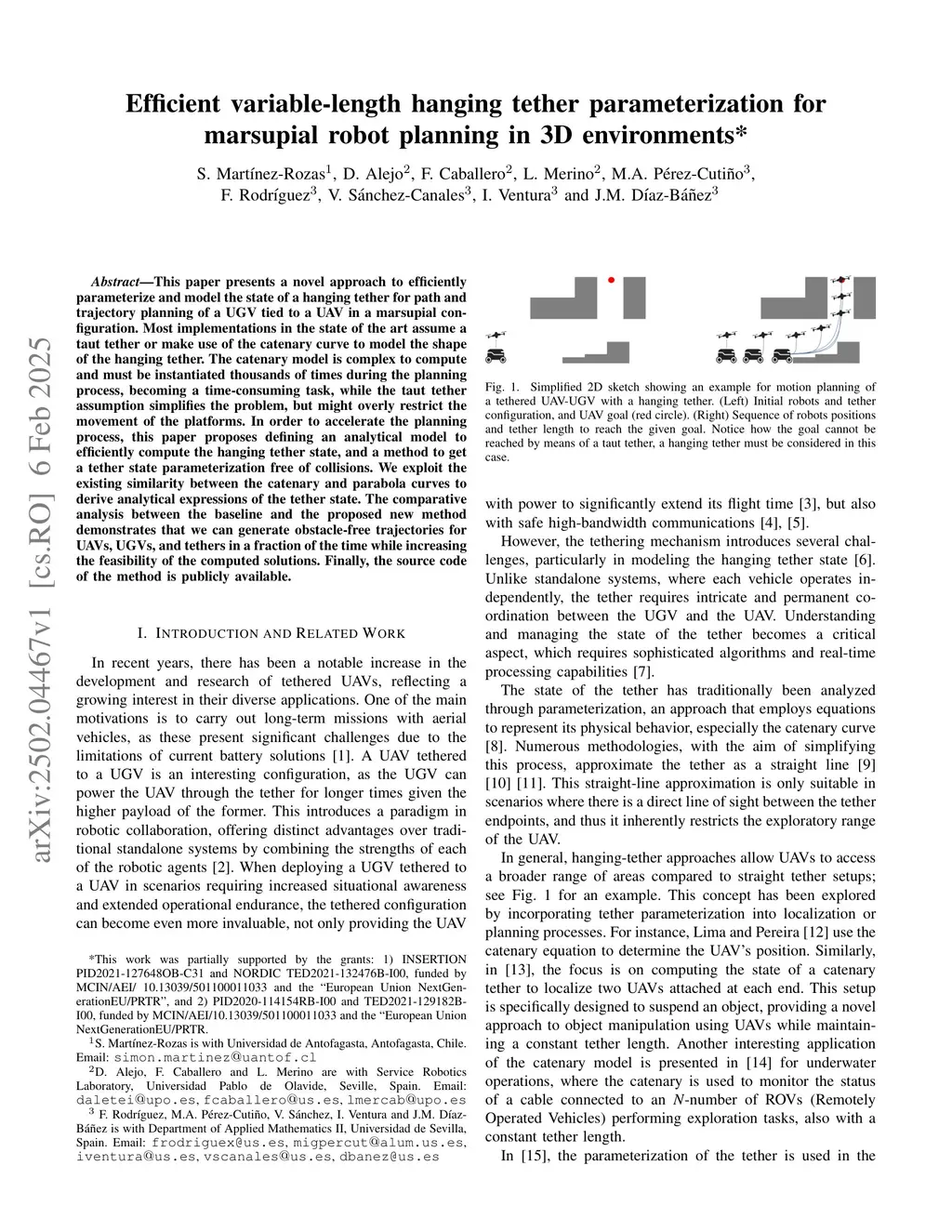Efficient variable-length hanging tether parameterization for marsupial robot planning in 3D environments