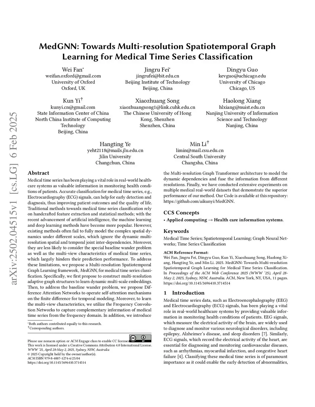 MedGNN: Towards Multi-resolution Spatiotemporal Graph Learning for Medical Time Series Classification