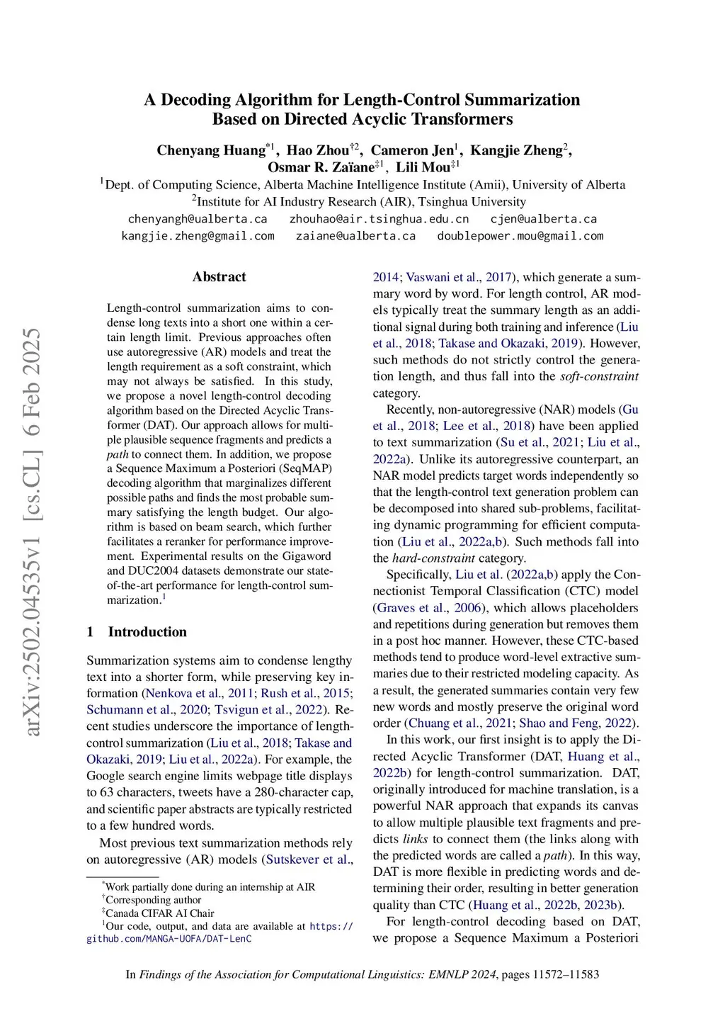 A Decoding Algorithm for Length-Control Summarization Based on Directed Acyclic Transformers