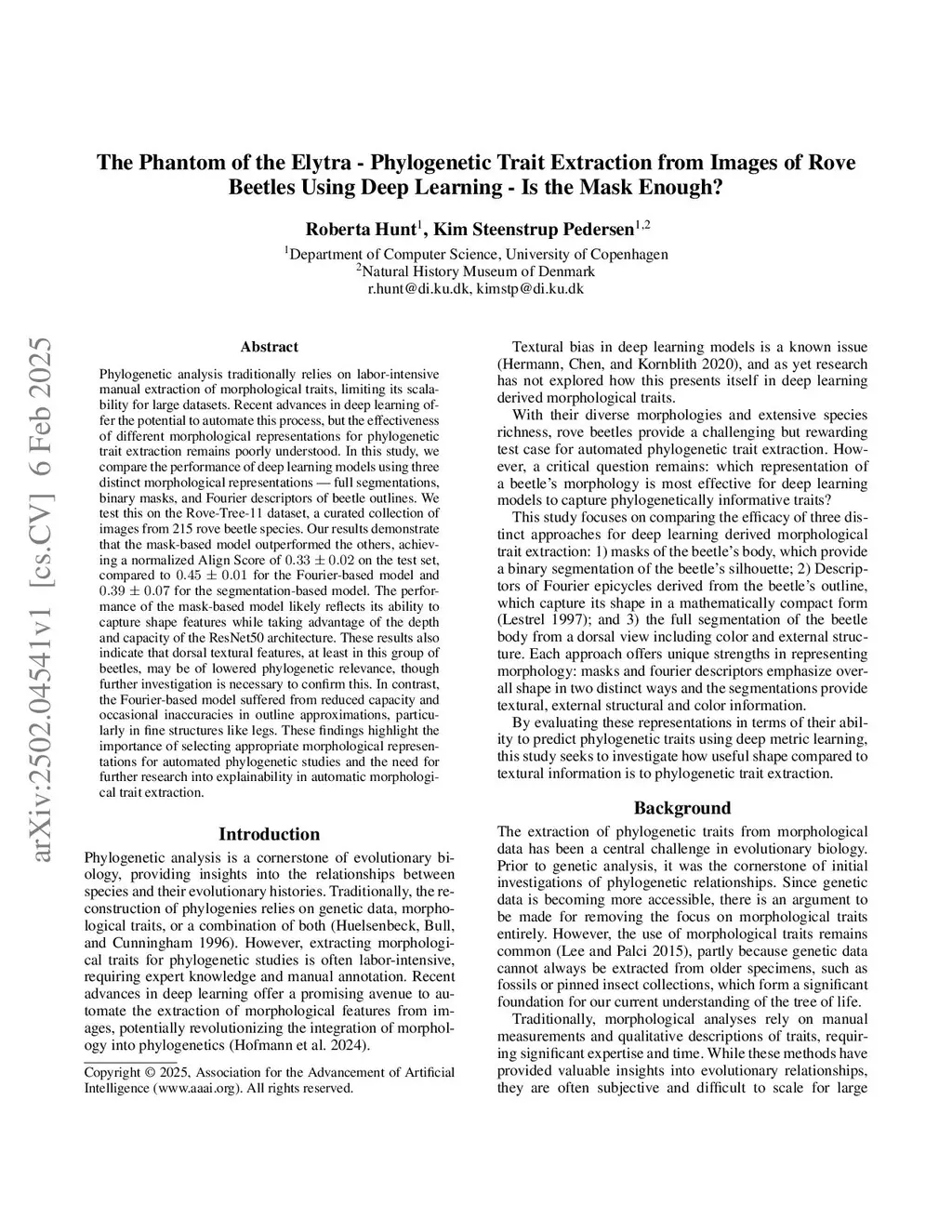 The Phantom of the Elytra -- Phylogenetic Trait Extraction from Images of Rove Beetles Using Deep Learning -- Is the Mask Enough?