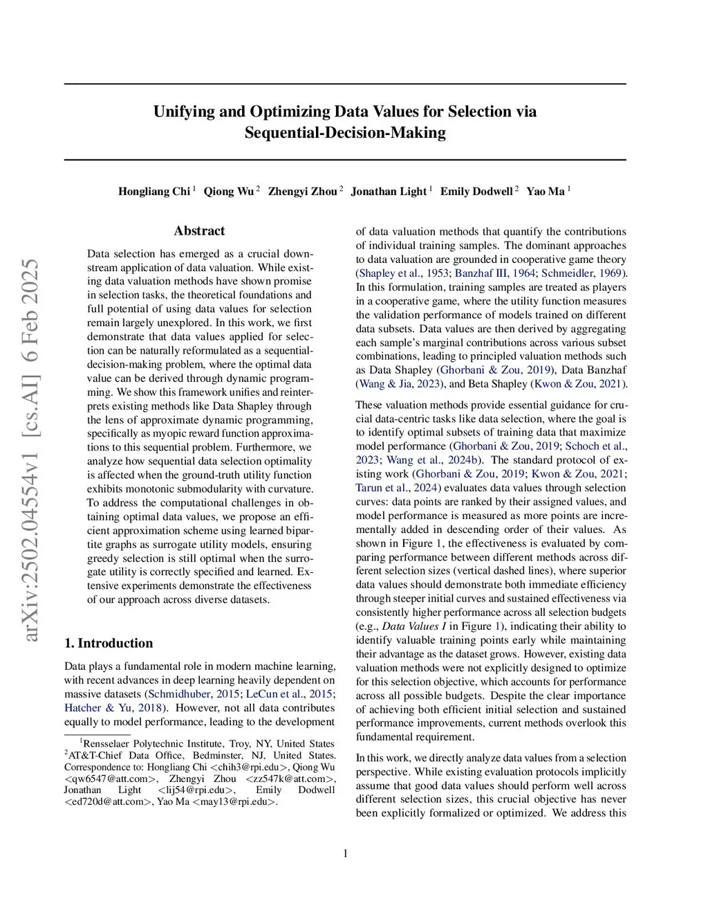 Unifying and Optimizing Data Values for Selection via Sequential-Decision-Making