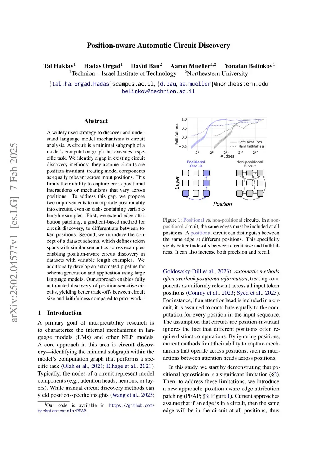 A widely used strategy to discover and understand language model mechanisms is circuit analysis. A circuit is a minimal subgraph of a model's computation graph that executes a specific task. We identify a gap in existing circuit discovery methods: they assume circuits are position-invariant, treating model components as equally relevant across input positions. This limits their ability to capture cross-positional interactions or mechanisms that vary across positions. To address this gap, we propose two improvements to incorporate positionality into circuits, even on tasks containing variable-length examples. First, we extend edge attribution patching, a gradient-based method for circuit discovery, to differentiate between token positions. Second, we introduce the concept of a dataset schema, which defines token spans with similar semantics across examples, enabling position-aware circuit discovery in datasets with variable length examples. We additionally develop an automated pipeline for schema generation and application using large language models. Our approach enables fully automated discovery of position-sensitive circuits, yielding better trade-offs between circuit size and faithfulness compared to prior work.