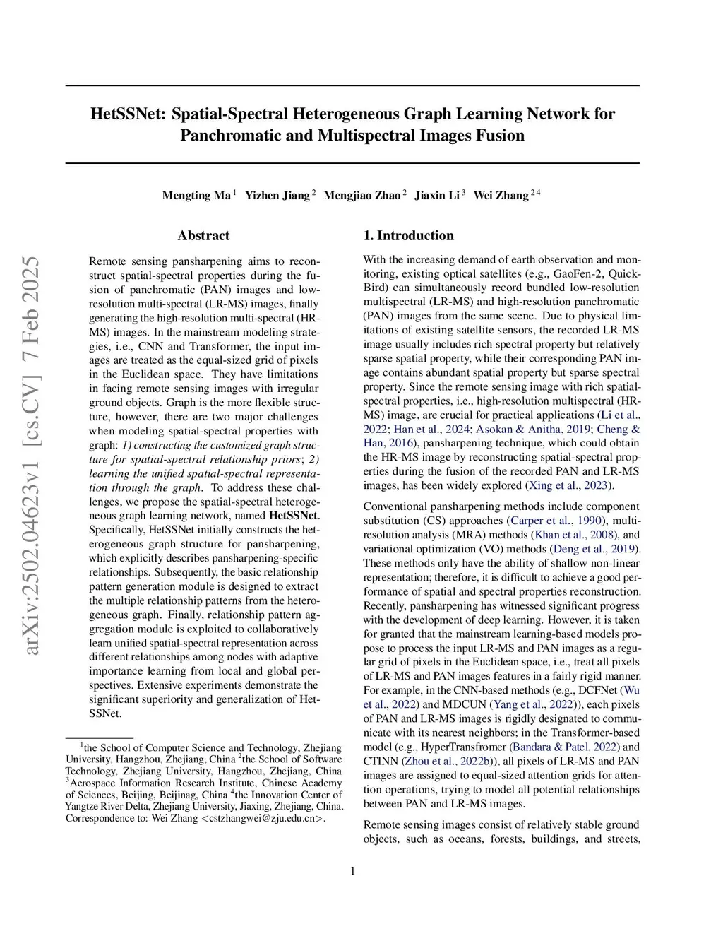 HetSSNet: Spatial-Spectral Heterogeneous Graph Learning Network for Panchromatic and Multispectral Images Fusion