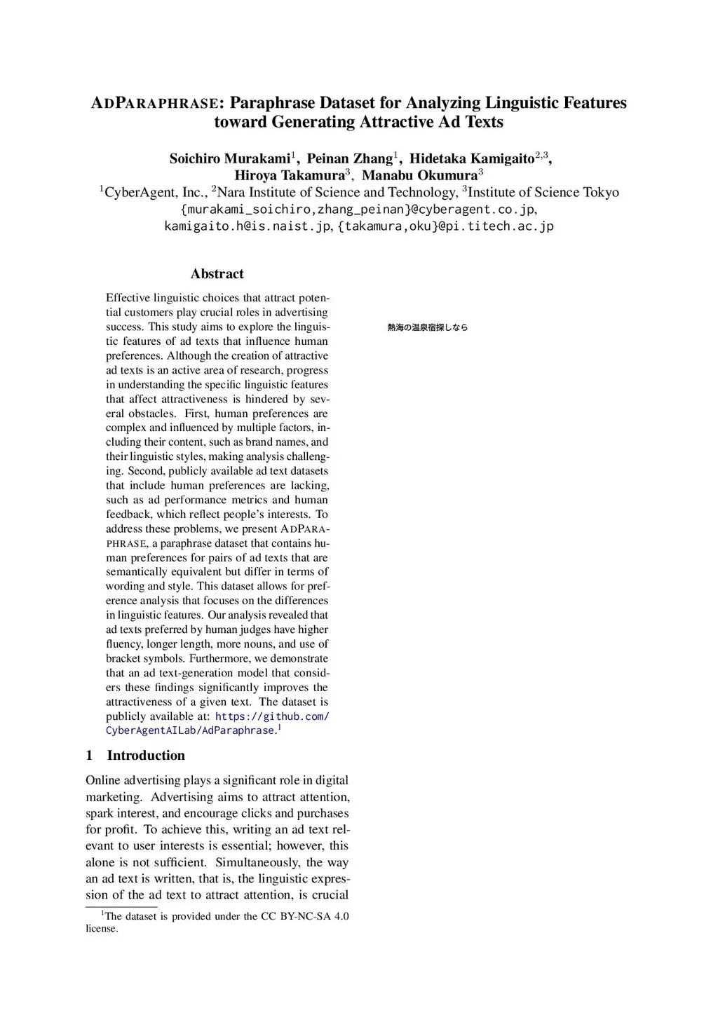 AdParaphrase: Paraphrase Dataset for Analyzing Linguistic Features toward Generating Attractive Ad Texts