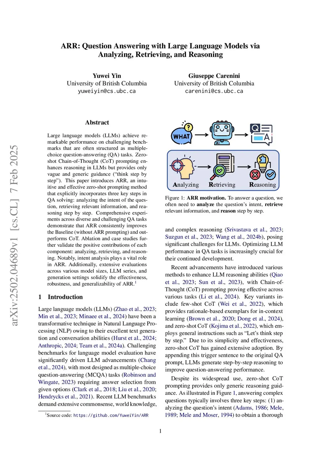 ARR: Question Answering with Large Language Models via Analyzing, Retrieving, and Reasoning
