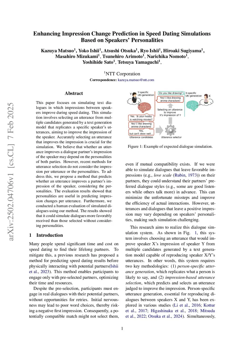 Enhancing Impression Change Prediction in Speed Dating Simulations Based on Speakers' Personalities