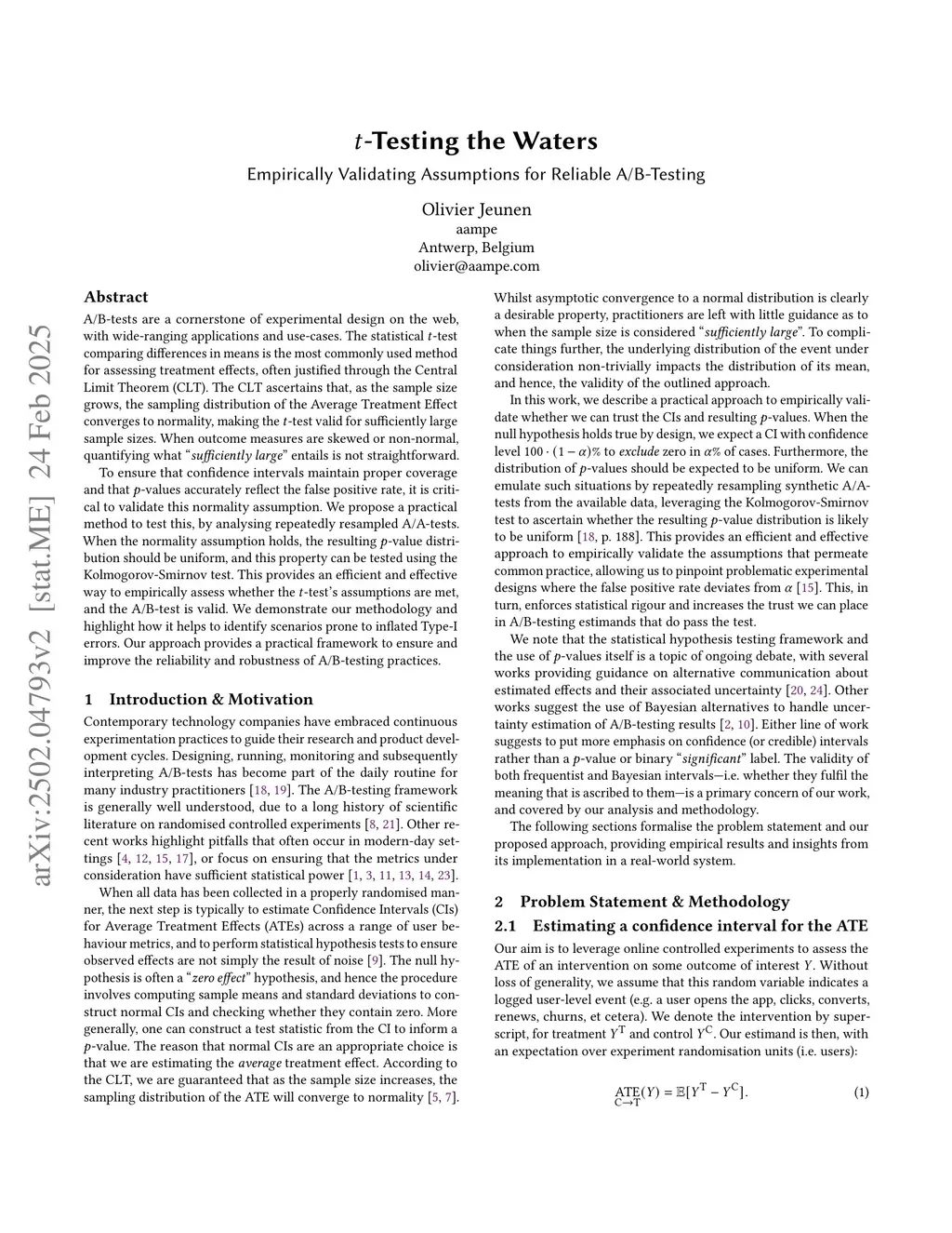 A/B-tests are a cornerstone of experimental design on the web, with wide-ranging applications and use-cases. The statistical -test comparing differences in means is the most commonly used method for assessing treatment effects, often justified through the Central Limit Theorem (CLT). The CLT ascertains that, as the sample size grows, the sampling distribution of the Average Treatment Effect converges to normality, making the -test valid for sufficiently large sample sizes. When outcome measures are skewed or non-normal, quantifying what "sufficiently large" entails is not straightforward.To ensure that confidence intervals maintain proper coverage and that -values accurately reflect the false positive rate, it is critical to validate this normality assumption. We propose a practical method to test this, by analysing repeatedly resampled A/A-tests. When the normality assumption holds, the resulting -value distribution should be uniform, and this property can be tested using the Kolmogorov-Smirnov test. This provides an efficient and effective way to empirically assess whether the -test's assumptions are met, and the A/B-test is valid. We demonstrate our methodology and highlight how it helps to identify scenarios prone to inflated Type-I errors. Our approach provides a practical framework to ensure and improve the reliability and robustness of A/B-testing practices.