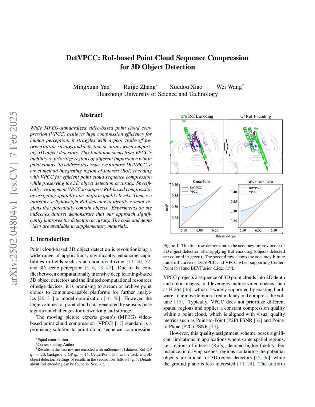 DetVPCC: RoI-based Point Cloud Sequence Compression for 3D Object Detection