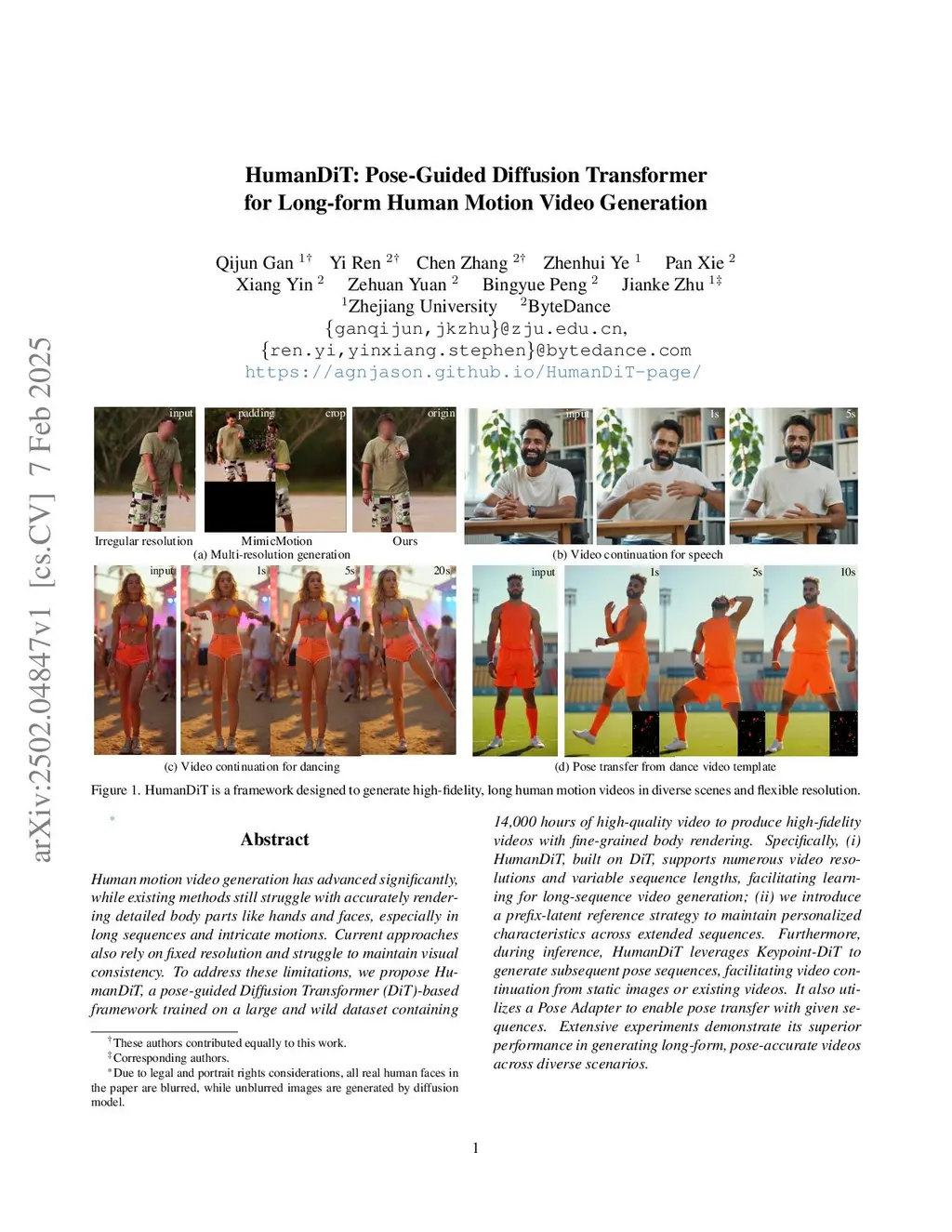 HumanDiT: Pose-Guided Diffusion Transformer for Long-form Human Motion Video Generation