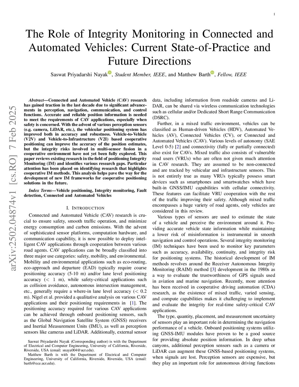 The Role of Integrity Monitoring in Connected and Automated Vehicles: Current State-of-Practice and Future Directions