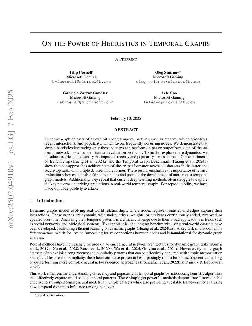 Dynamic graph datasets often exhibit strong temporal patterns, such as recency, which prioritizes recent interactions, and popularity, which favors frequently occurring nodes. We demonstrate that simple heuristics leveraging only these patterns can perform on par or outperform state-of-the-art neural network models under standard evaluation protocols. To further explore these dynamics, we introduce metrics that quantify the impact of recency and popularity across datasets. Our experiments on BenchTemp and the Temporal Graph Benchmark show that our approaches achieve state-of-the-art performance across all datasets in the latter and secure top ranks on multiple datasets in the former. These results emphasize the importance of refined evaluation schemes to enable fair comparisons and promote the development of more robust temporal graph models. Additionally, they reveal that current deep learning methods often struggle to capture the key patterns underlying predictions in real-world temporal graphs. For reproducibility, we have made our code publicly available.