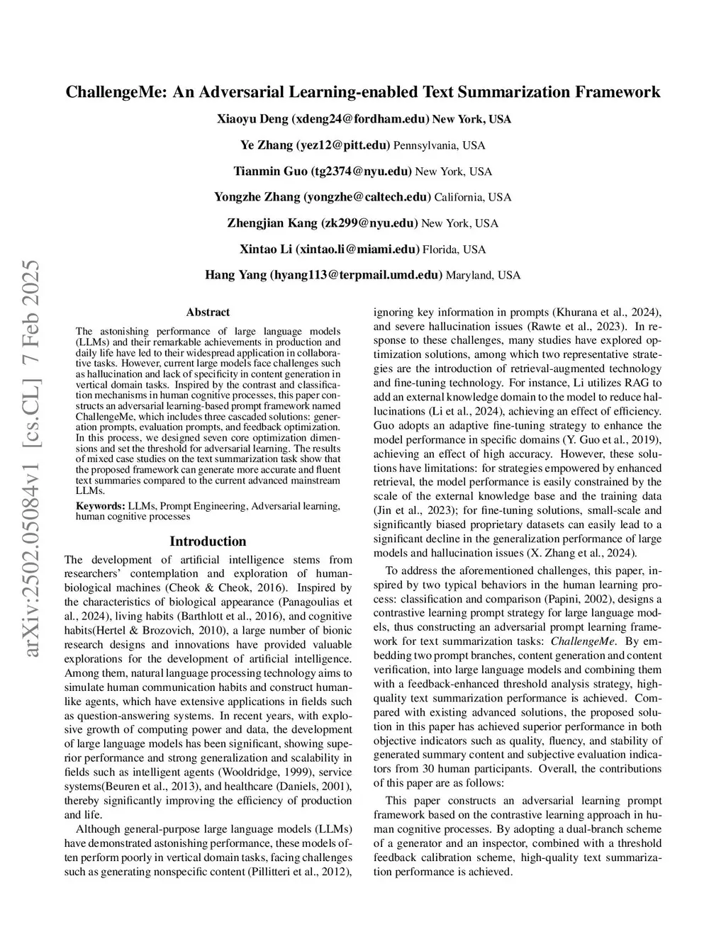 The astonishing performance of large language models (LLMs) and their remarkable achievements in production and daily life have led to their widespread application in collaborative tasks. However, current large models face challenges such as hallucination and lack of specificity in content generation in vertical domain tasks. Inspired by the contrast and classification mechanisms in human cognitive processes, this paper constructs an adversarial learning-based prompt framework named ChallengeMe, which includes three cascaded solutions: generation prompts, evaluation prompts, and feedback optimization. In this process, we designed seven core optimization dimensions and set the threshold for adversarial learning. The results of mixed case studies on the text summarization task show that the proposed framework can generate more accurate and fluent text summaries compared to the current advanced mainstream LLMs.