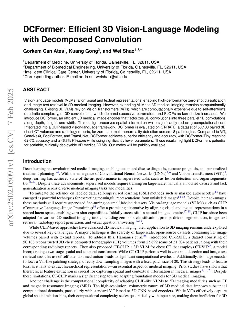 DCFormer: Efficient 3D Vision-Language Modeling with Decomposed Convolutions