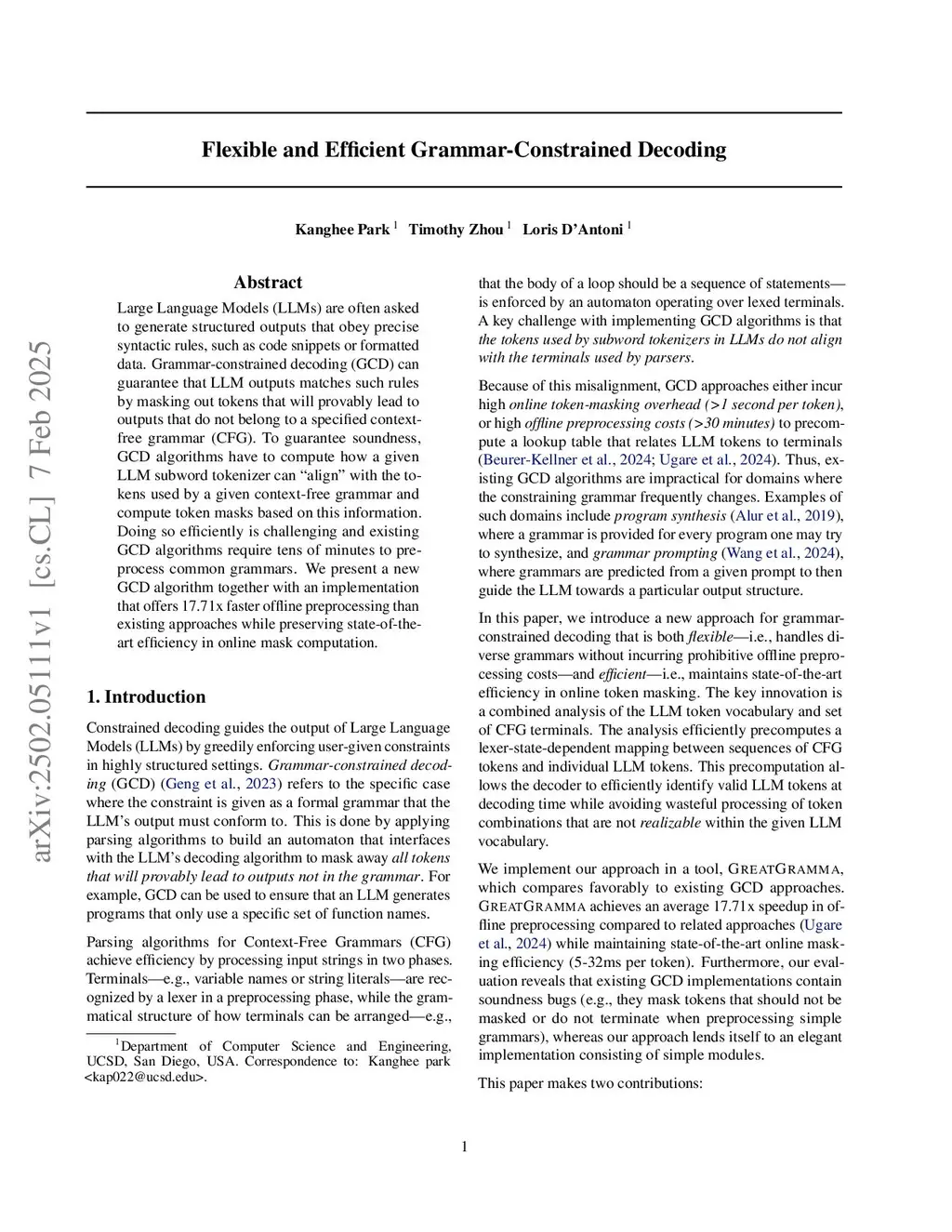 Flexible and Efficient Grammar-Constrained Decoding