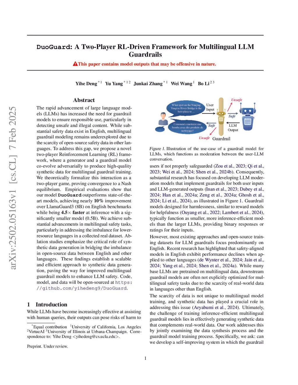 DuoGuard: A Two-Player RL-Driven Framework for Multilingual LLM Guardrails
