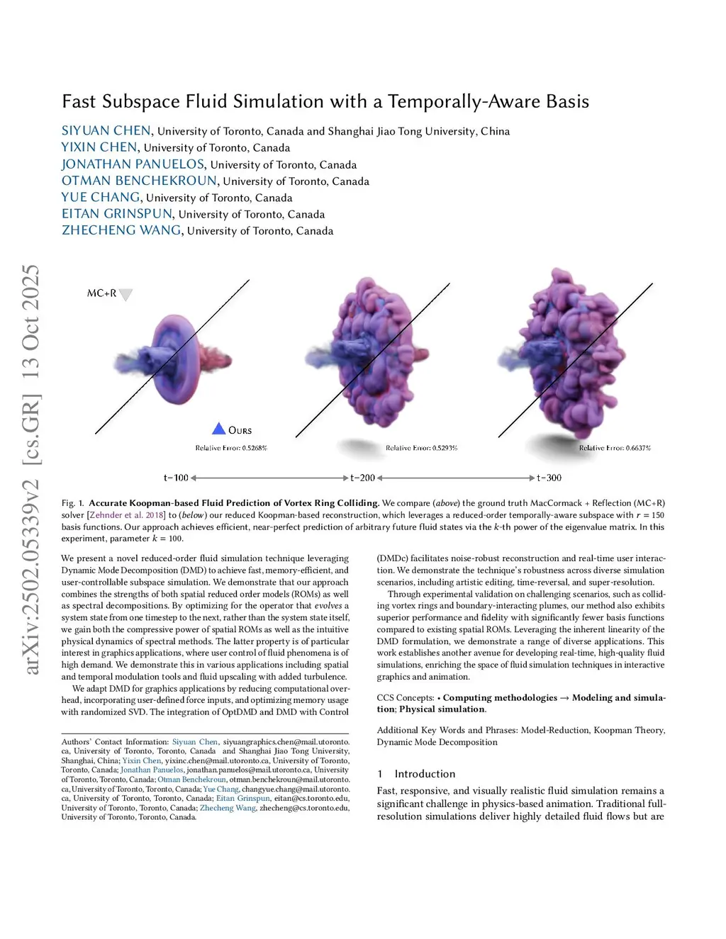 We present a novel reduced-order fluid simulation technique leveraging Dynamic Mode Decomposition (DMD) to achieve fast, memory-efficient, and user-controllable subspace simulation. We demonstrate that our approach combines the strengths of both spatial reduced order models (ROMs) as well as spectral decompositions. By optimizing for the operator that evolves a system state from one timestep to the next, rather than the system state itself, we gain both the compressive power of spatial ROMs as well as the intuitive physical dynamics of spectral methods. The latter property is of particular interest in graphics applications, where user control of fluid phenomena is of high demand. We demonstrate this in various applications including spatial and temporal modulation tools and fluid upscaling with added turbulence.We adapt DMD for graphics applications by reducing computational overhead, incorporating user-defined force inputs, and optimizing memory usage with randomized SVD. The integration of OptDMD and DMD with Control (DMDc) facilitates noise-robust reconstruction and real-time user interaction. We demonstrate the technique's robustness across diverse simulation scenarios, including artistic editing, time-reversal, and super-resolution.Through experimental validation on challenging scenarios, such as colliding vortex rings and boundary-interacting plumes, our method also exhibits superior performance and fidelity with significantly fewer basis functions compared to existing spatial ROMs. The inherent linearity of the DMD operator enables unique application modes, such as time-reversible fluid simulation. This work establishes another avenue for developing real-time, high-quality fluid simulations, enriching the space of fluid simulation techniques in interactive graphics and animation.