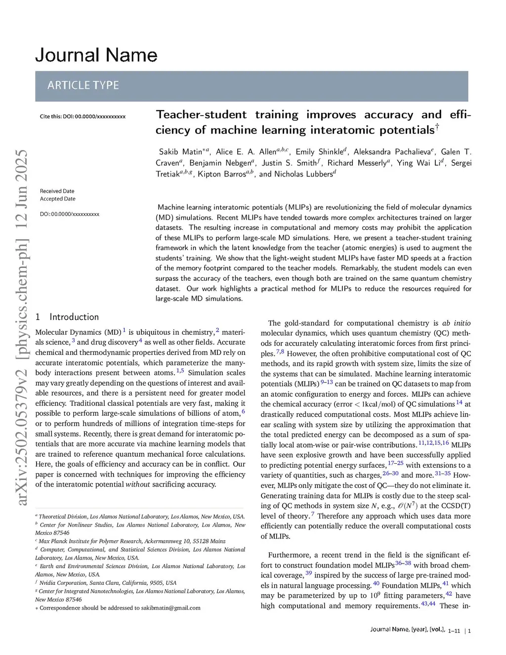 Teacher-student training improves accuracy and efficiency of machine learning interatomic potentials