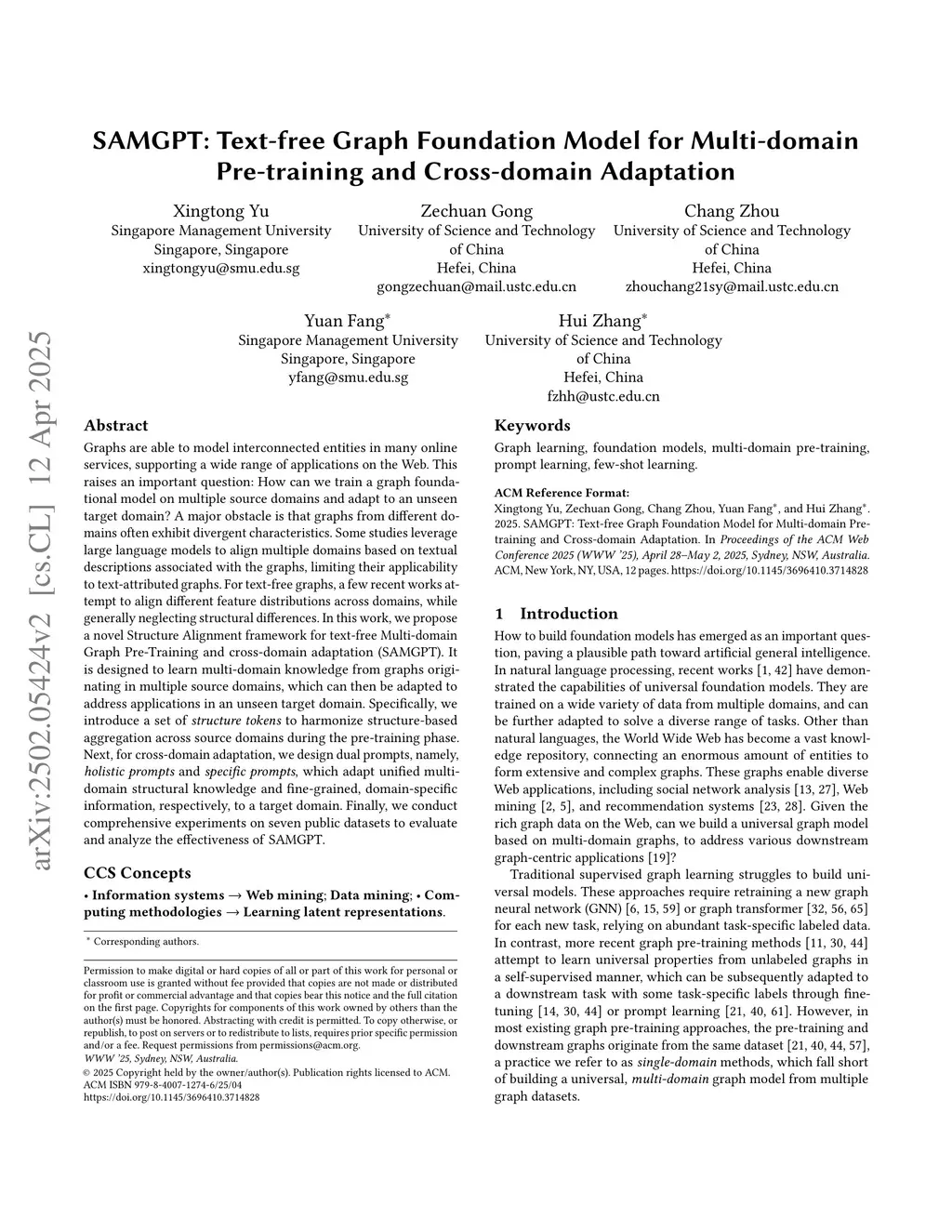 SAMGPT: Text-free Graph Foundation Model for Multi-domain Pre-training and Cross-domain Adaptation