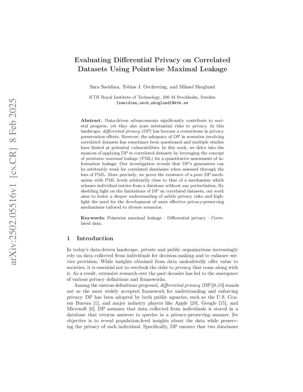 Evaluating Differential Privacy on Correlated Datasets Using Pointwise Maximal Leakage