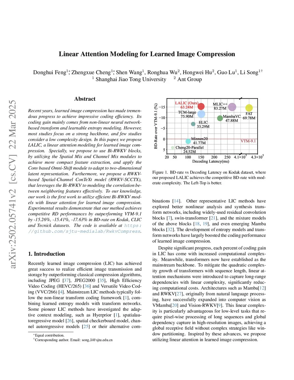 Recent years, learned image compression has made tremendous progress to achieve impressive coding efficiency. Its coding gain mainly comes from non-linear neural network-based transform and learnable entropy modeling. However, most studies focus on a strong backbone, and few studies consider a low complexity design. In this paper, we propose LALIC, a linear attention modeling for learned image compression. Specially, we propose to use Bi-RWKV blocks, by utilizing the Spatial Mix and Channel Mix modules to achieve more compact feature extraction, and apply the Conv based Omni-Shift module to adapt to two-dimensional latent representation. Furthermore, we propose a RWKV-based Spatial-Channel ConTeXt model (RWKV-SCCTX), that leverages the Bi-RWKV to modeling the correlation between neighboring features effectively. To our knowledge, our work is the first work to utilize efficient Bi-RWKV models with linear attention for learned image compression. Experimental results demonstrate that our method achieves competitive RD performances by outperforming VTM-9.1 by -15.26%, -15.41%, -17.63% in BD-rate on Kodak, CLIC and Tecnick datasets. The code is available atthis https URL.