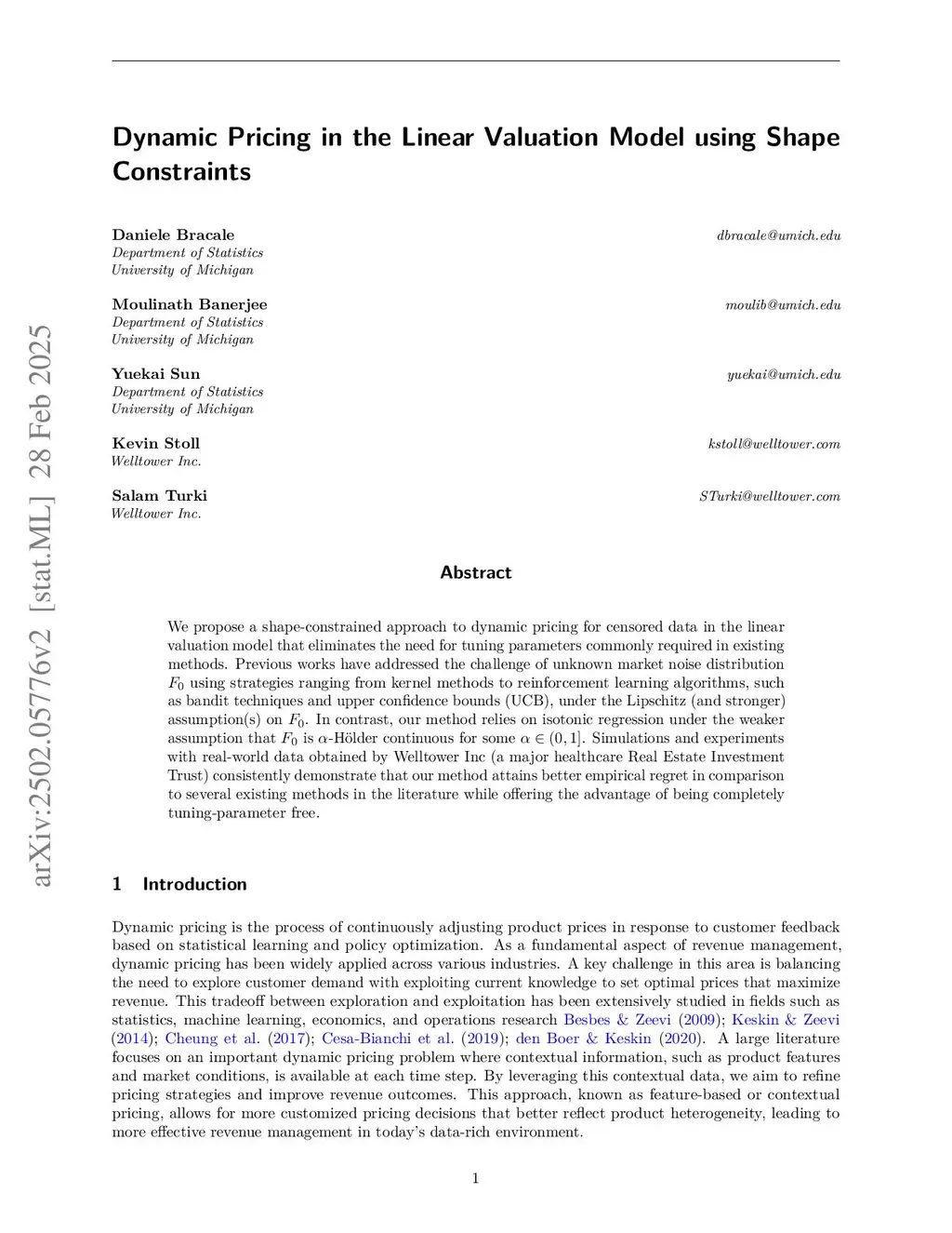 We propose a shape-constrained approach to dynamic pricing for censored data in the linear valuation model eliminating the need for tuning parameters commonly required by existing methods. Previous works have addressed the challenge of unknown market noise distribution using strategies ranging from kernel methods to reinforcement learning algorithms, such as bandit techniques and upper confidence bounds (UCB), under the assumption that satisfies Lipschitz (or stronger) conditions. In contrast, our method relies on isotonic regression under the weaker assumption that is -Hölder continuous for some , for which we derive a regret upper bound. Simulations and experiments with real-world data obtained by Welltower Inc (a major healthcare Real Estate Investment Trust) consistently demonstrate that our method attains lower empirical regret in comparison to several existing methods in the literature while offering the advantage of being tuning-parameter free.