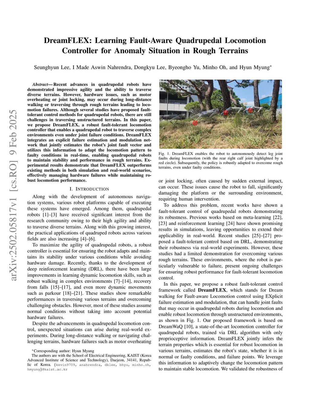 DreamFLEX: Learning Fault-Aware Quadrupedal Locomotion Controller for Anomaly Situation in Rough Terrains