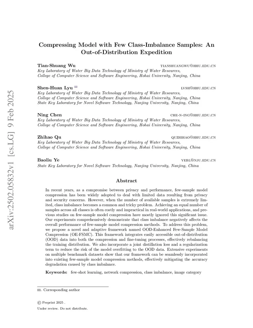 Compressing Model with Few Class-Imbalance Samples: An Out-of-Distribution Expedition