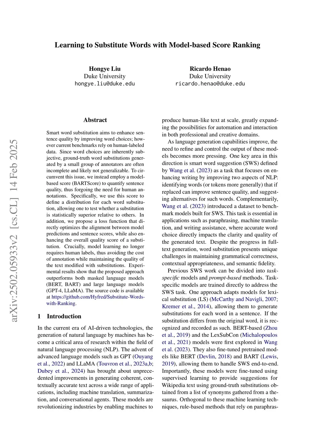 Learning to Substitute Words with Model-based Score Ranking