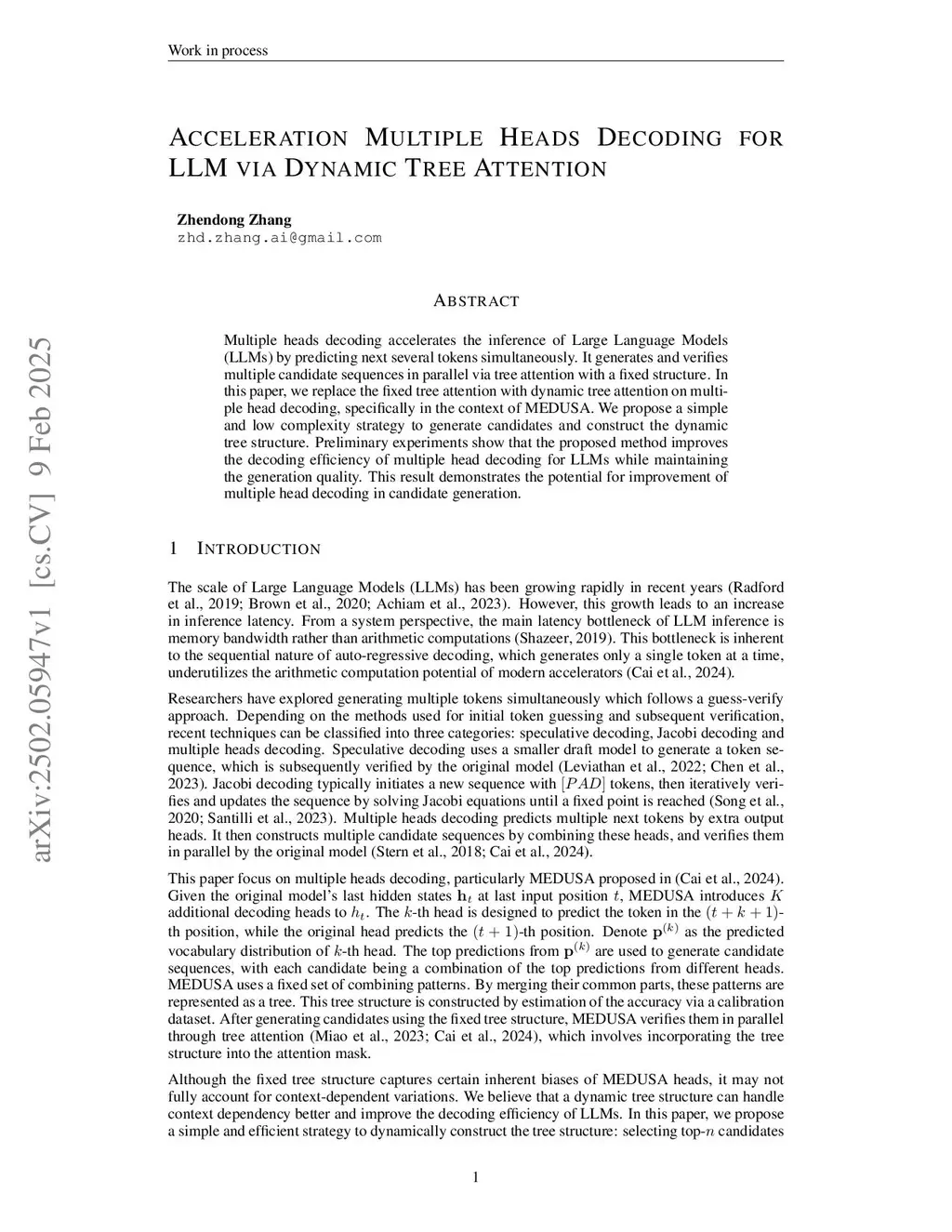 Acceleration Multiple Heads Decoding for LLM via Dynamic Tree Attention
