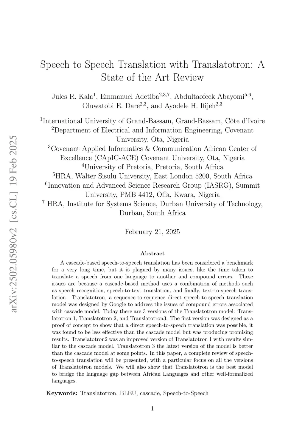 A cascade-based speech-to-speech translation has been considered a benchmark for a very long time, but it is plagued by many issues, like the time taken to translate a speech from one language to another and compound errors. These issues are because a cascade-based method uses a combination of methods such as speech recognition, speech-to-text translation, and finally, text-to-speech translation. Translatotron, a sequence-to-sequence direct speech-to-speech translation model was designed by Google to address the issues of compound errors associated with cascade model. Today there are 3 versions of the Translatotron model: Translatotron 1, Translatotron 2, and Translatotron3. The first version was designed as a proof of concept to show that a direct speech-to-speech translation was possible, it was found to be less effective than the cascade model but was producing promising results. Translatotron2 was an improved version of Translatotron 1 with results similar to the cascade model. Translatotron 3 the latest version of the model is better than the cascade model at some points. In this paper, a complete review of speech-to-speech translation will be presented, with a particular focus on all the versions of Translatotron models. We will also show that Translatotron is the best model to bridge the language gap between African Languages and other well-formalized languages.