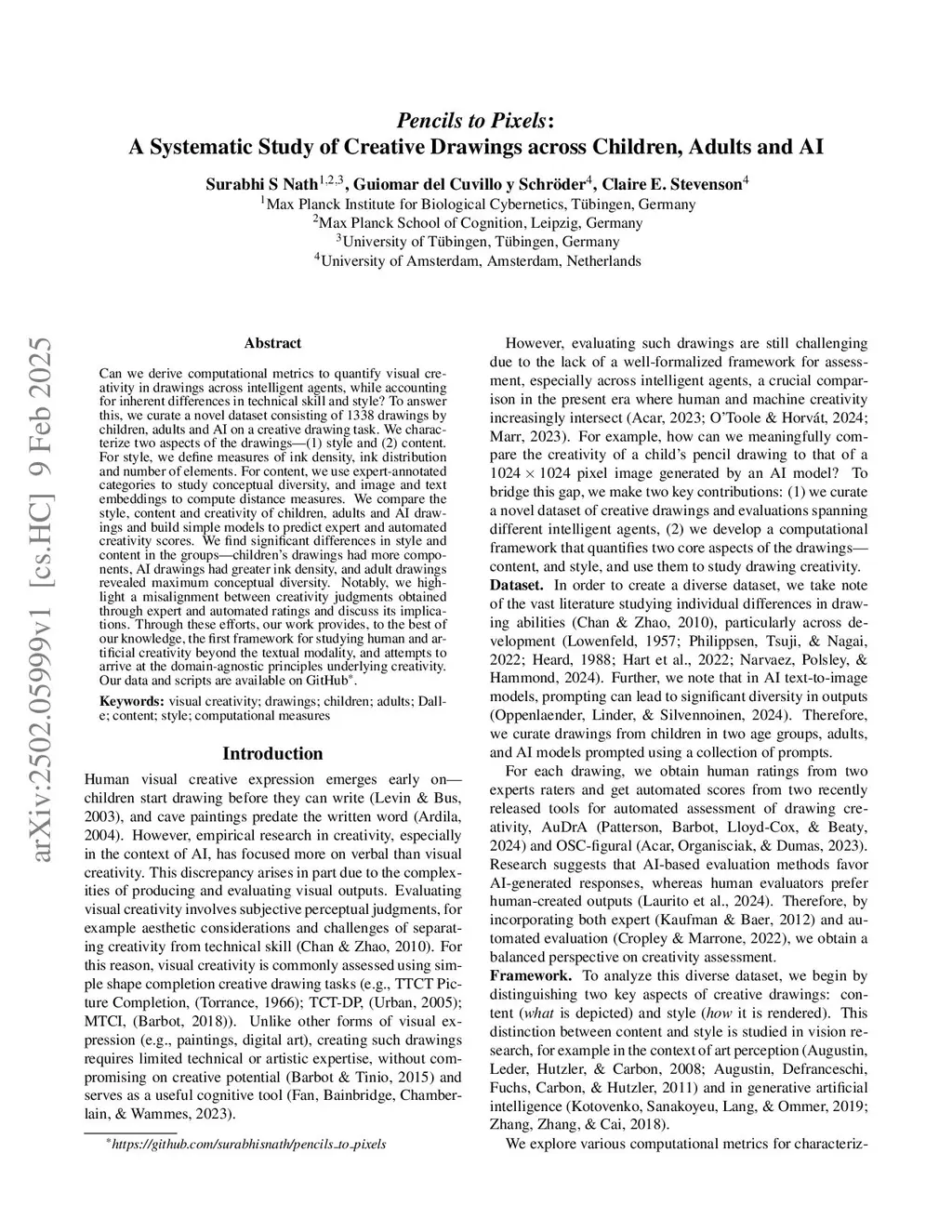 Pencils to Pixels: A Systematic Study of Creative Drawings across Children, Adults and AI