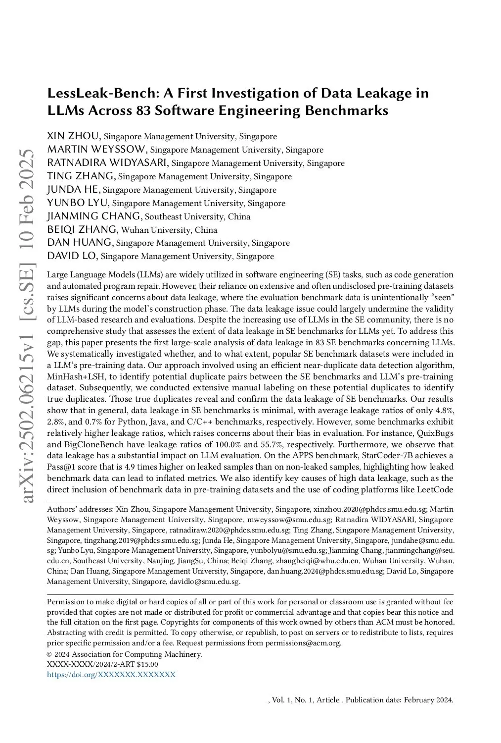 LessLeak-Bench: A First Investigation of Data Leakage in LLMs Across 83 Software Engineering Benchmarks