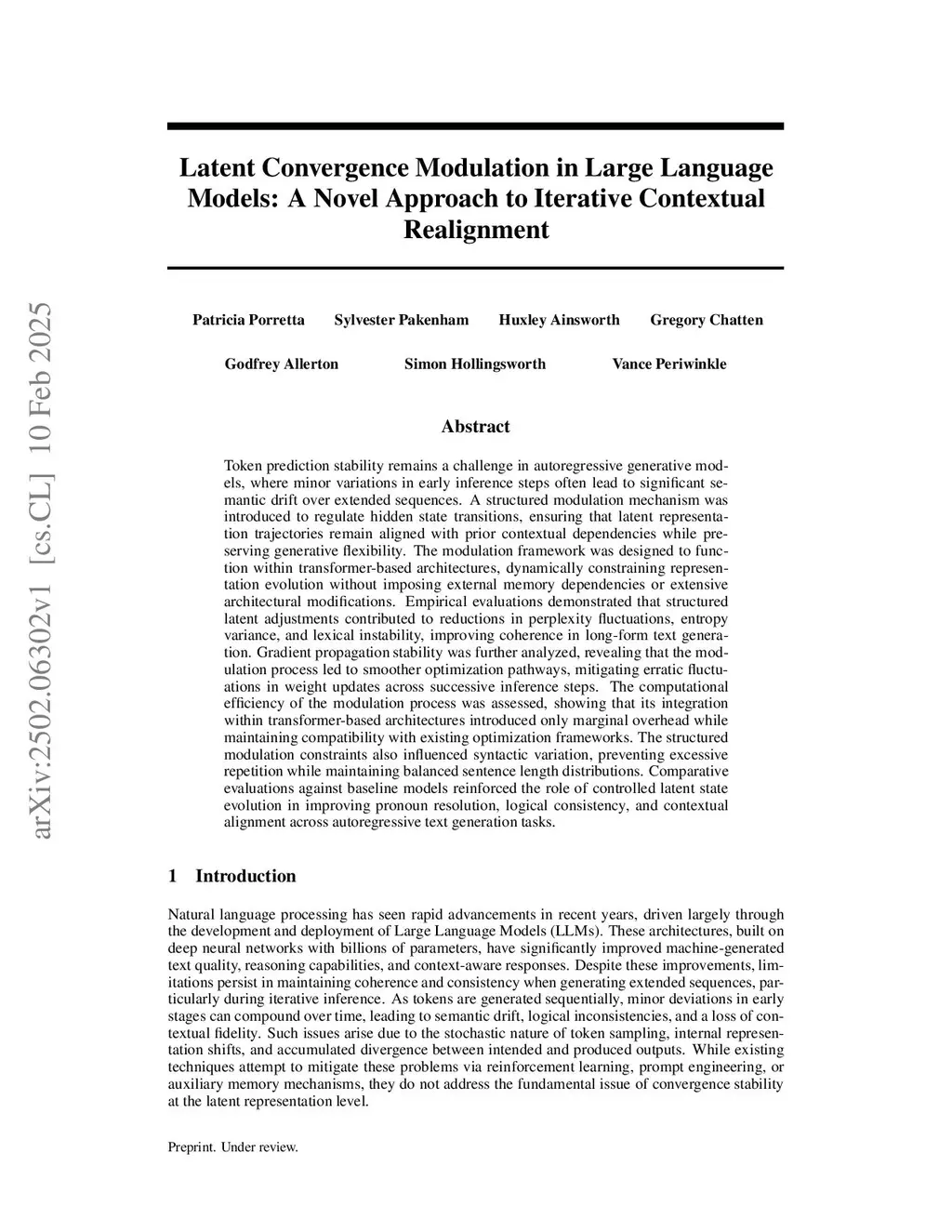 Token prediction stability remains a challenge in autoregressive generative models, where minor variations in early inference steps often lead to significant semantic drift over extended sequences. A structured modulation mechanism was introduced to regulate hidden state transitions, ensuring that latent representation trajectories remain aligned with prior contextual dependencies while preserving generative flexibility. The modulation framework was designed to function within transformer-based architectures, dynamically constraining representation evolution without imposing external memory dependencies or extensive architectural modifications. Empirical evaluations demonstrated that structured latent adjustments contributed to reductions in perplexity fluctuations, entropy variance, and lexical instability, improving coherence in long-form text generation. Gradient propagation stability was further analyzed, revealing that the modulation process led to smoother optimization pathways, mitigating erratic fluctuations in weight updates across successive inference steps. The computational efficiency of the modulation process was assessed, showing that its integration within transformer-based architectures introduced only marginal overhead while maintaining compatibility with existing optimization frameworks. The structured modulation constraints also influenced syntactic variation, preventing excessive repetition while maintaining balanced sentence length distributions. Comparative evaluations against baseline models reinforced the role of controlled latent state evolution in improving pronoun resolution, logical consistency, and contextual alignment across autoregressive text generation tasks.