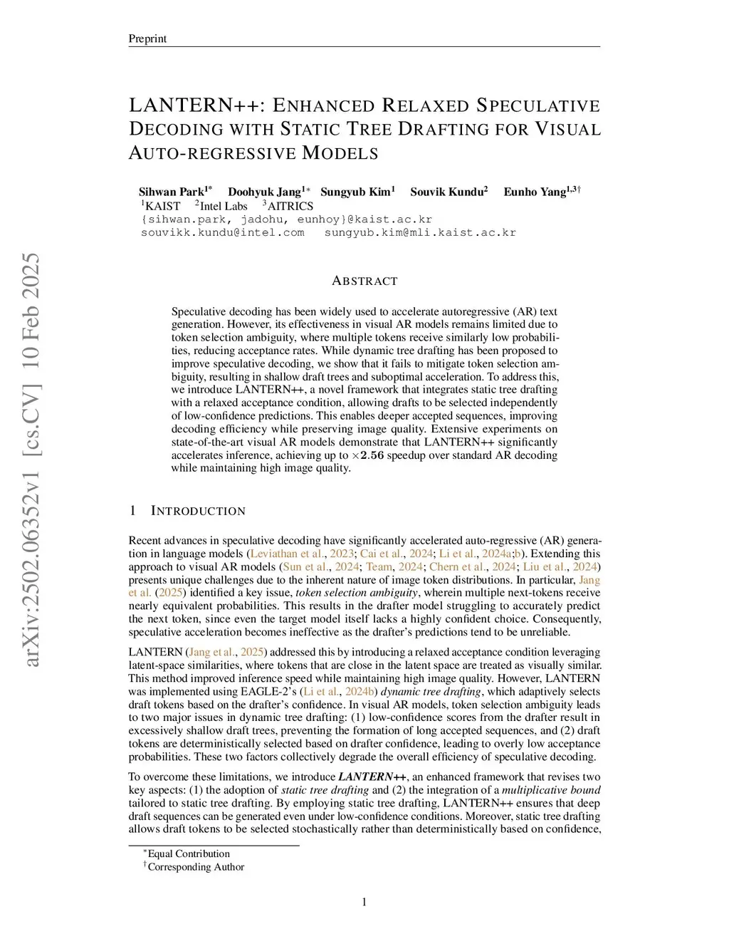 LANTERN++: Enhancing Relaxed Speculative Decoding with Static Tree Drafting for Visual Auto-regressive Models