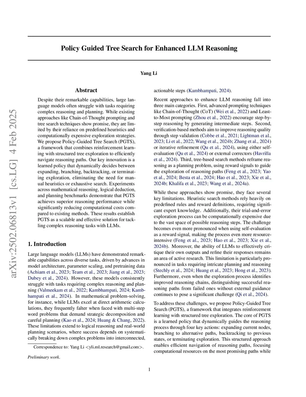 Policy Guided Tree Search for Enhanced LLM Reasoning