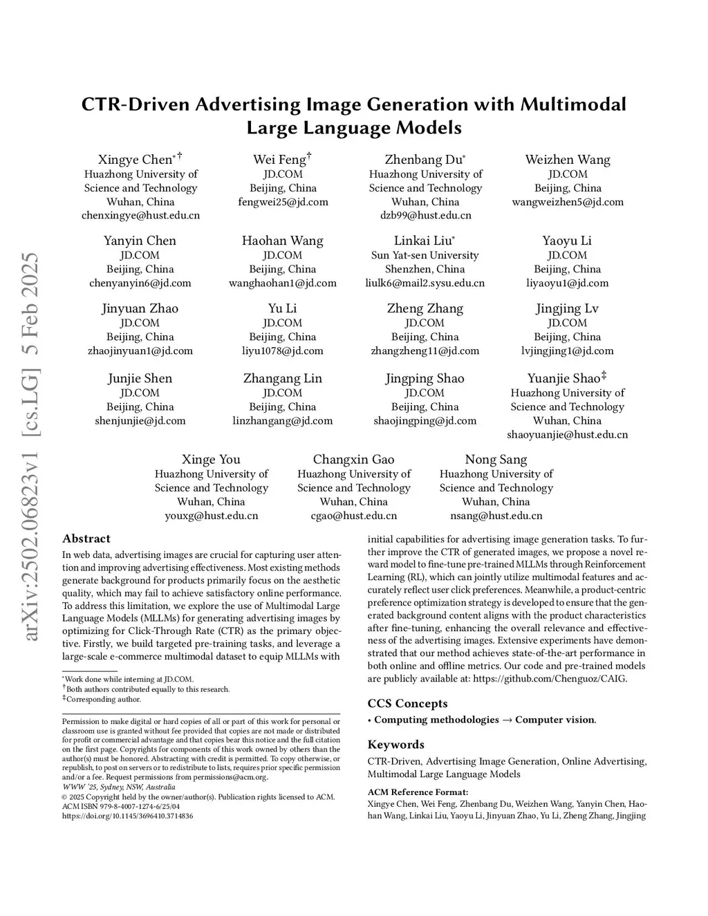 CTR-Driven Advertising Image Generation with Multimodal Large Language Models