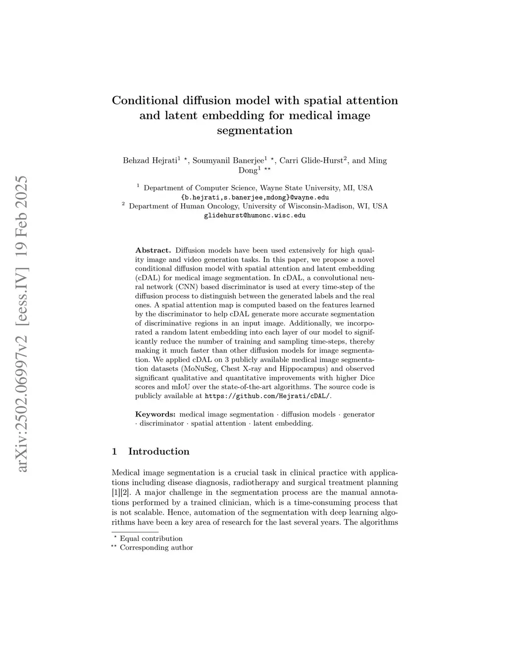 Conditional diffusion model with spatial attention and latent embedding for medical image segmentation