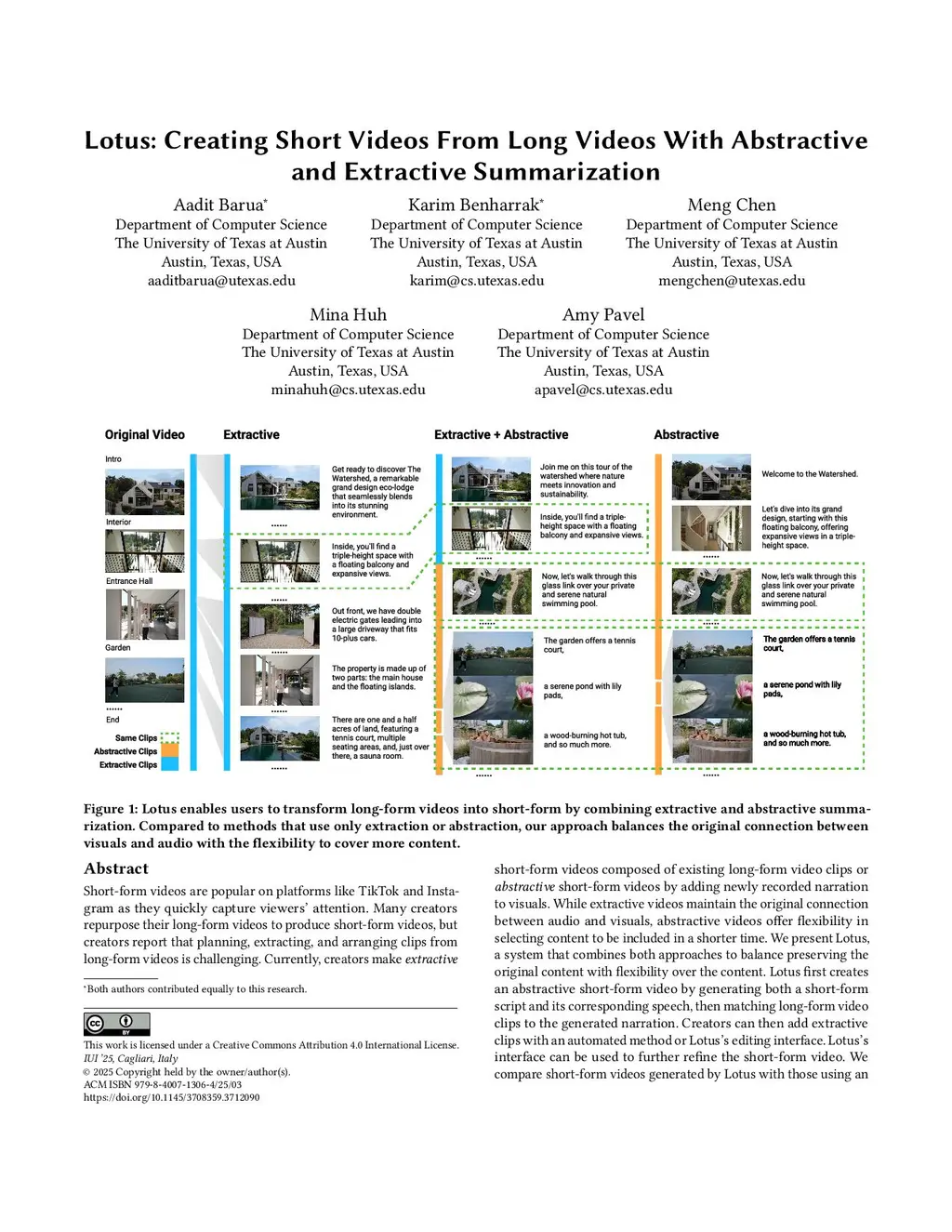 Lotus: Creating Short Videos From Long Videos With Abstractive and Extractive Summarization