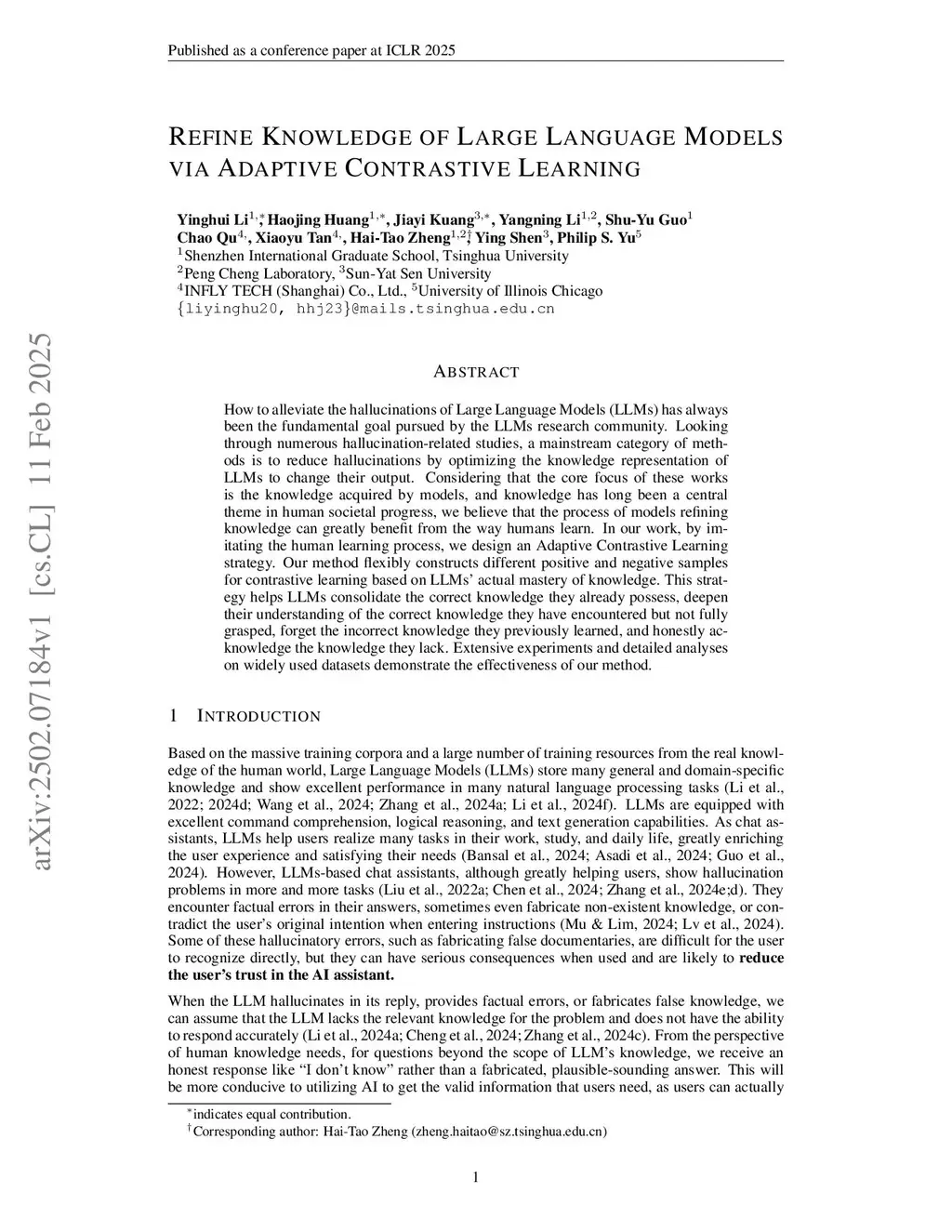 Refine Knowledge of Large Language Models via Adaptive Contrastive Learning