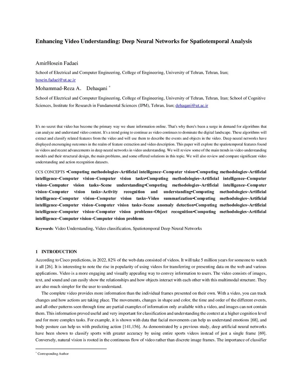 Enhancing Video Understanding: Deep Neural Networks for Spatiotemporal Analysis
