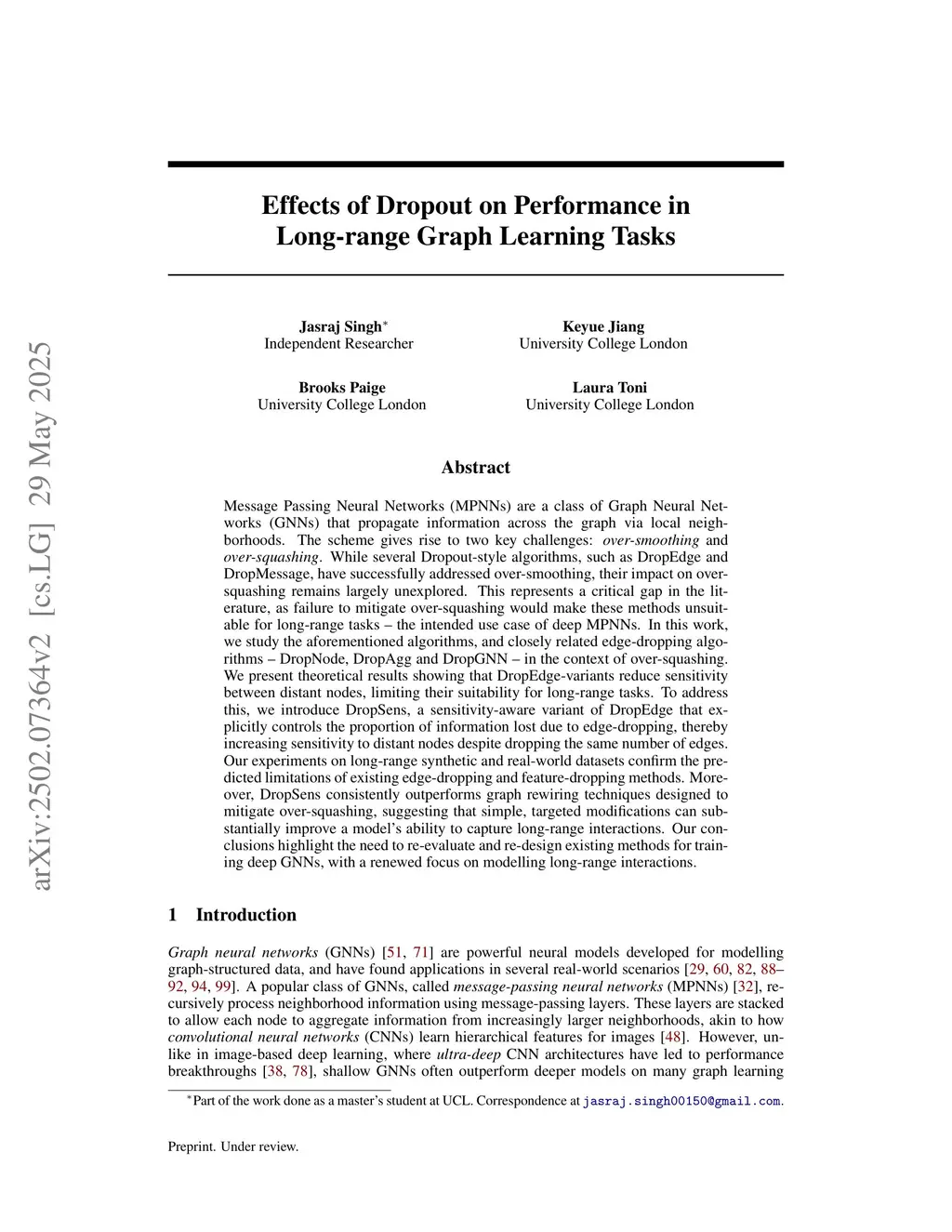 Message Passing Neural Networks (MPNNs) are a class of Graph Neural Networks (GNNs) that propagate information across the graph via local neighborhoods. The scheme gives rise to two key challenges: over-smoothing and over-squashing. While several Dropout-style algorithms, such as DropEdge and DropMessage, have successfully addressed over-smoothing, their impact on over-squashing remains largely unexplored. This represents a critical gap in the literature, as failure to mitigate over-squashing would make these methods unsuitable for long-range tasks -- the intended use case of deep MPNNs. In this work, we study the aforementioned algorithms, and closely related edge-dropping algorithms -- DropNode, DropAgg and DropGNN -- in the context of over-squashing. We present theoretical results showing that DropEdge-variants reduce sensitivity between distant nodes, limiting their suitability for long-range tasks. To address this, we introduce DropSens, a sensitivity-aware variant of DropEdge that explicitly controls the proportion of information lost due to edge-dropping, thereby increasing sensitivity to distant nodes despite dropping the same number of edges. Our experiments on long-range synthetic and real-world datasets confirm the predicted limitations of existing edge-dropping and feature-dropping methods. Moreover, DropSens consistently outperforms graph rewiring techniques designed to mitigate over-squashing, suggesting that simple, targeted modifications can substantially improve a model's ability to capture long-range interactions. Our conclusions highlight the need to re-evaluate and re-design existing methods for training deep GNNs, with a renewed focus on modelling long-range interactions.