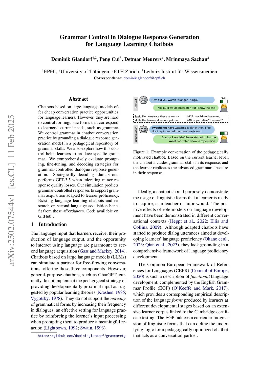 Grammar Control in Dialogue Response Generation for Language Learning Chatbots