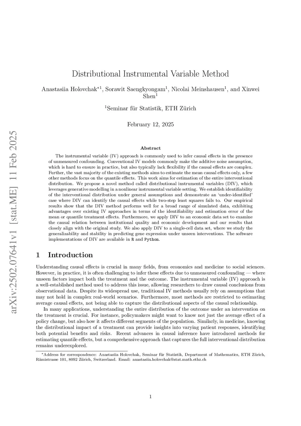 The instrumental variable (IV) approach is commonly used to infer causal effects in the presence of unmeasured confounding. Existing methods typically aim to estimate the mean causal effects, whereas a few other methods focus on quantile treatment effects. The aim of this work is to estimate the entire interventional distribution. We propose a method called Distributional Instrumental Variable (DIV), which uses generative modelling in a nonlinear IV setting. We establish identifiability of the interventional distribution under general assumptions and demonstrate an únder-identified' case, where DIV can identify the causal effects while two-step least squares fails to. Our empirical results show that the DIV method performs well for a broad range of simulated data, exhibiting advantages over existing IV approaches in terms of the identifiability and estimation error of the mean or quantile treatment effects. Furthermore, we apply DIV to an economic data set to examine the causal relation between institutional quality and economic development and our results align well with the original study. We also apply DIV to a single-cell data set, where we study the generalizability and stability in predicting gene expression under unseen interventions. The software implementations of DIV are available in R and Python.