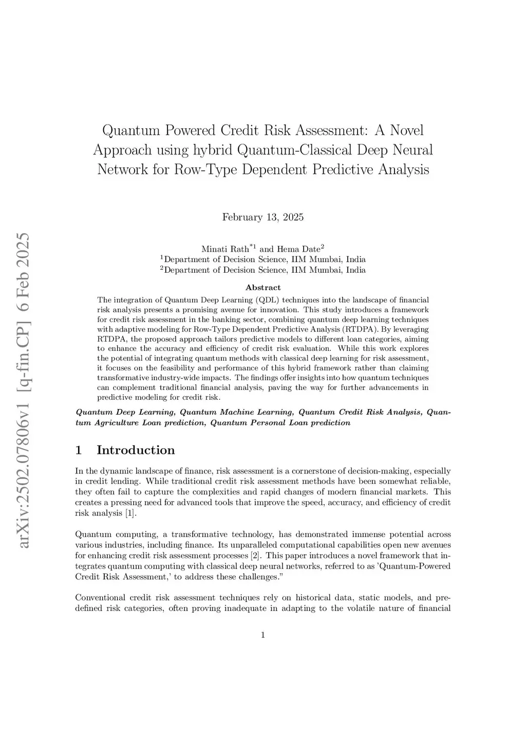 The integration of Quantum Deep Learning (QDL) techniques into the landscape of financial risk analysis presents a promising avenue for innovation. This study introduces a framework for credit risk assessment in the banking sector, combining quantum deep learning techniques with adaptive modeling for Row-Type Dependent Predictive Analysis (RTDPA). By leveraging RTDPA, the proposed approach tailors predictive models to different loan categories, aiming to enhance the accuracy and efficiency of credit risk evaluation. While this work explores the potential of integrating quantum methods with classical deep learning for risk assessment, it focuses on the feasibility and performance of this hybrid framework rather than claiming transformative industry-wide impacts. The findings offer insights into how quantum techniques can complement traditional financial analysis, paving the way for further advancements in predictive modeling for credit risk.