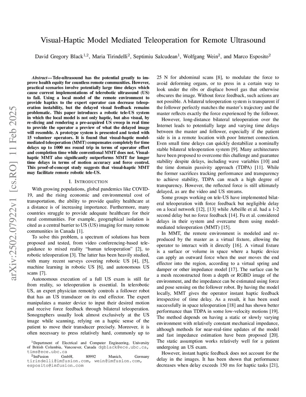 Visual-Haptic Model Mediated Teleoperation for Remote Ultrasound