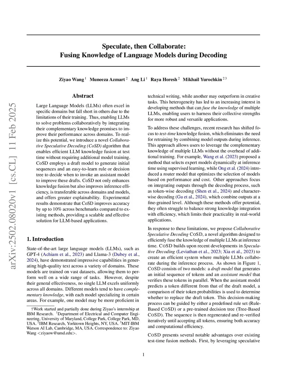 Speculate, then Collaborate: Fusing Knowledge of Language Models during Decoding